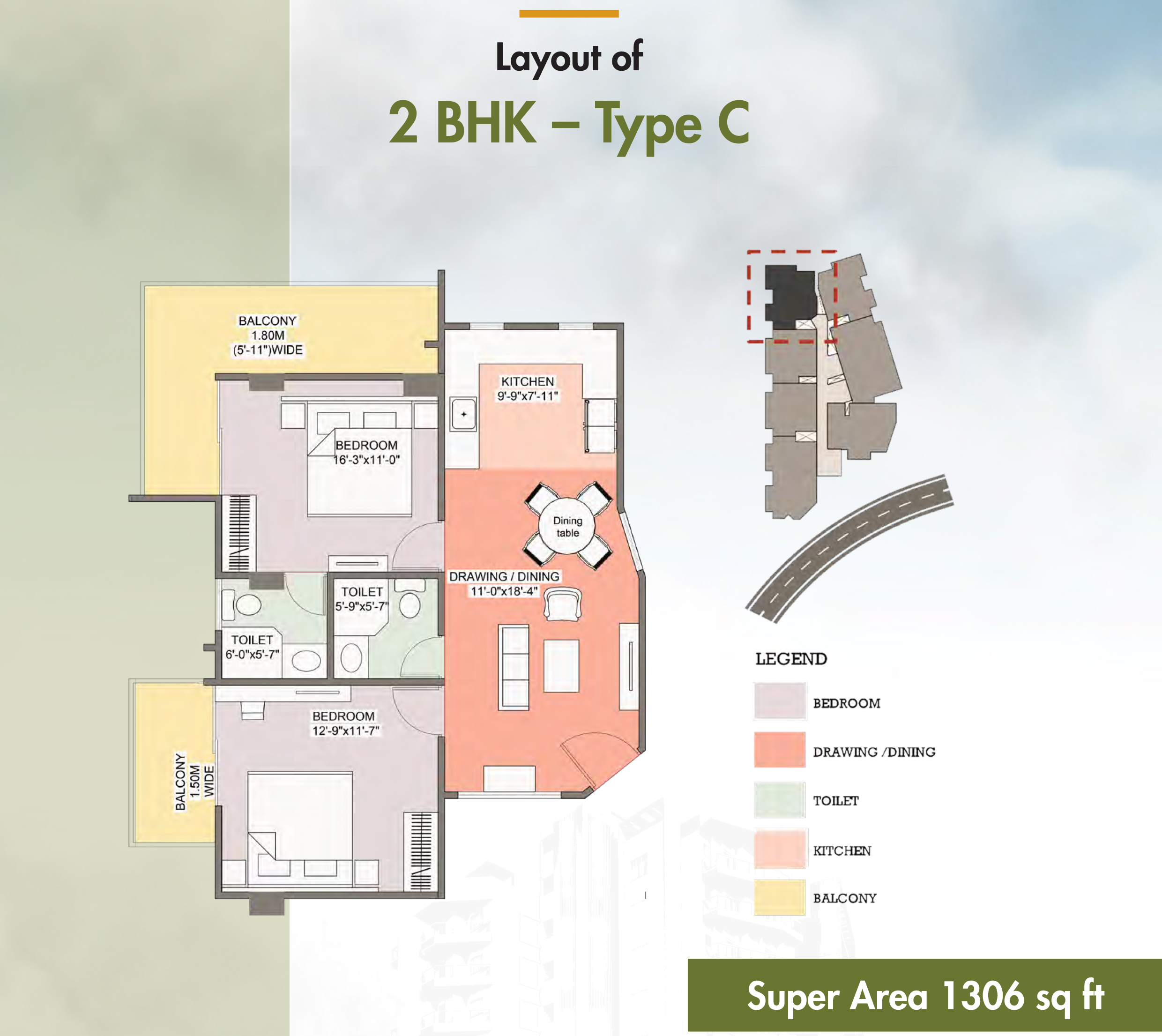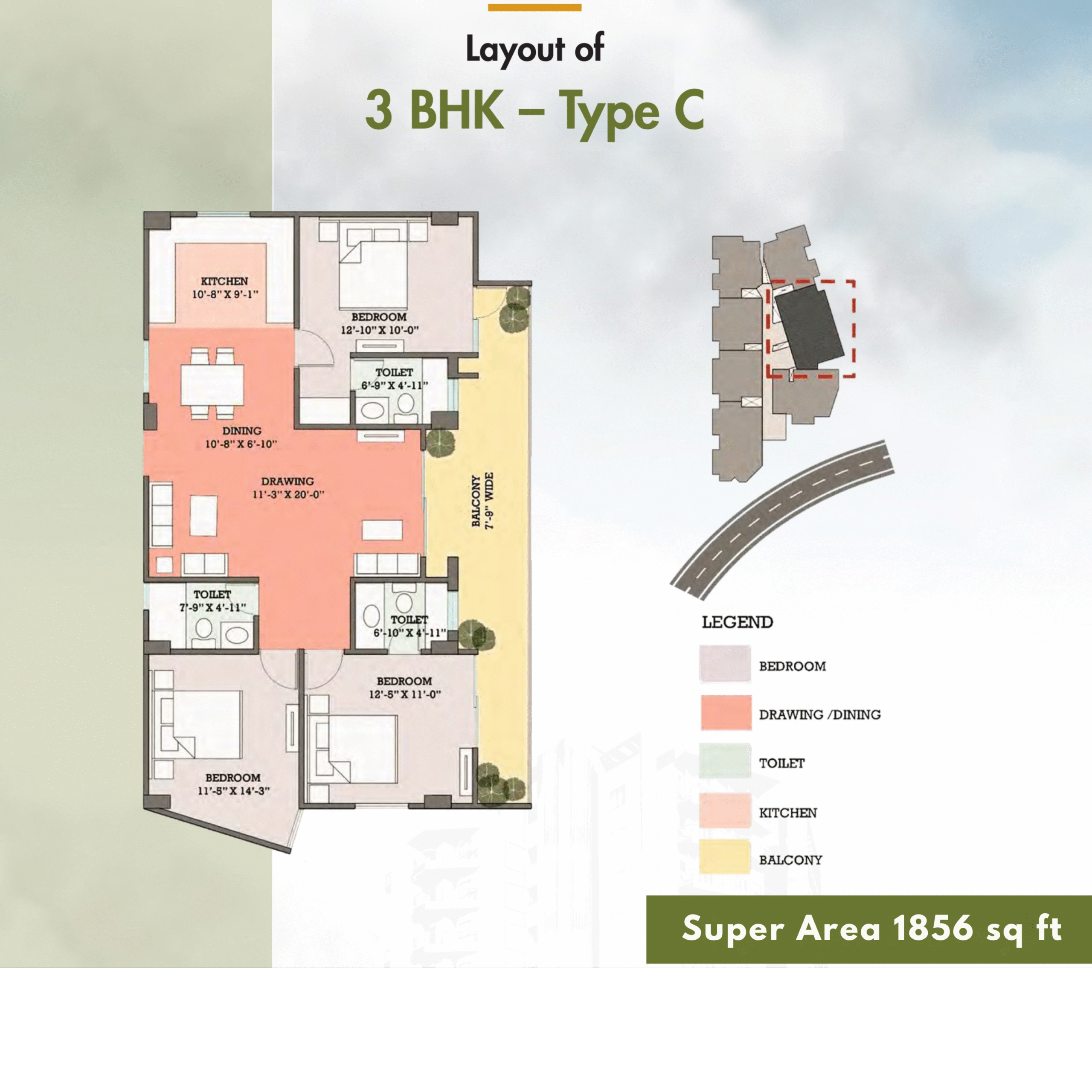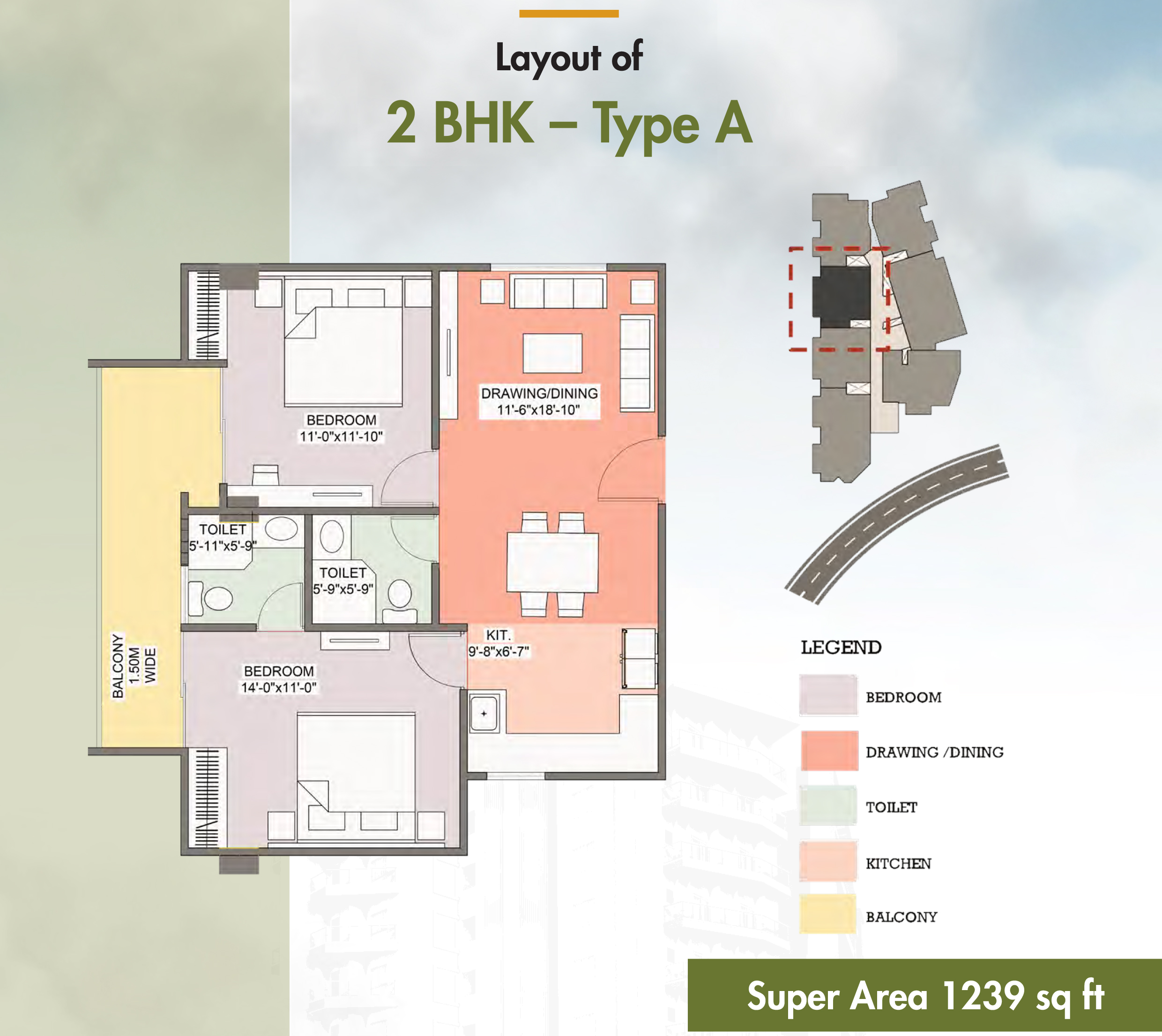 Apartment/flat size start 1239 square feet to 1856 square feet
