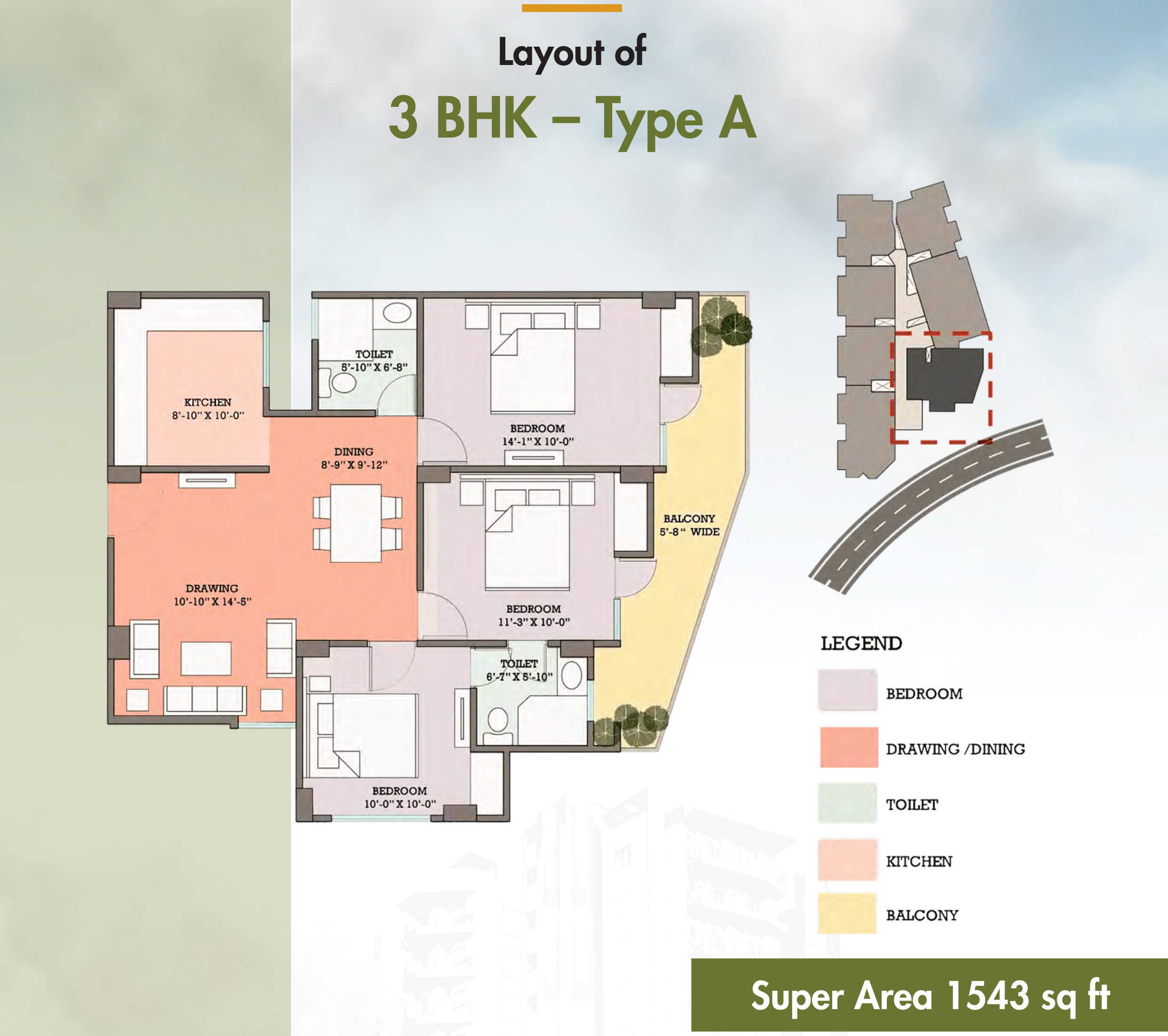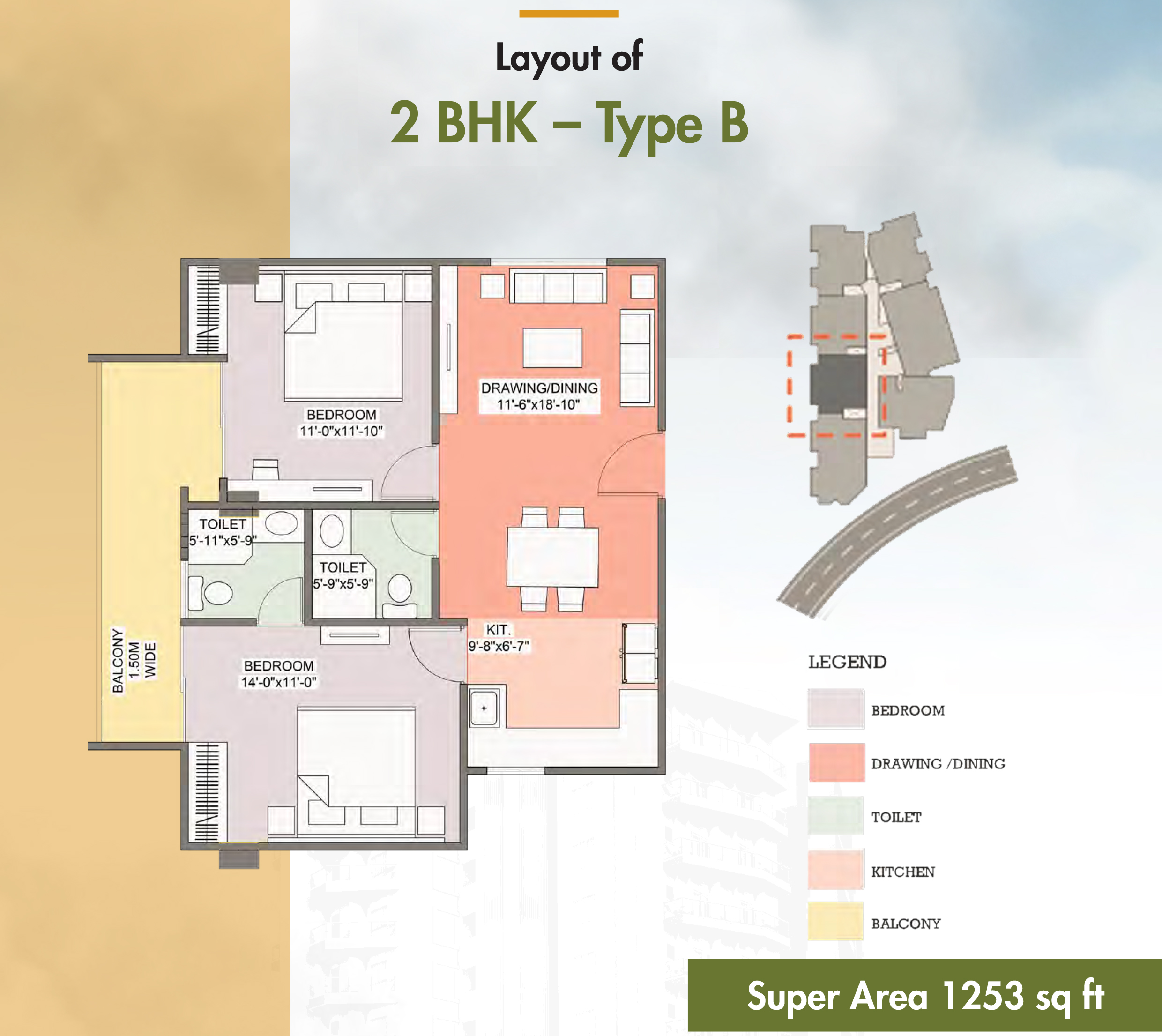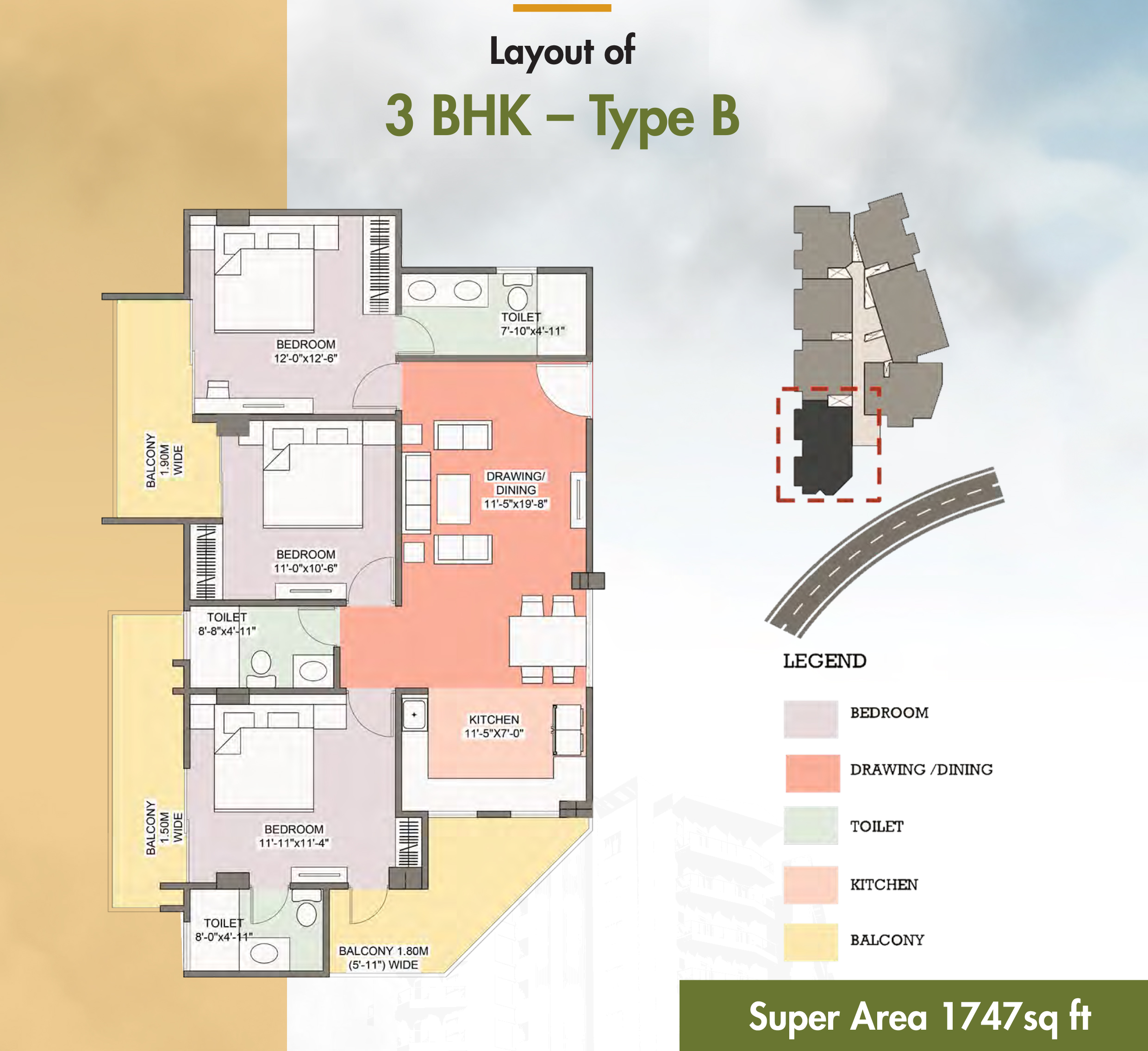 Apartment/flat size start 1239 square feet to 1856 square feet